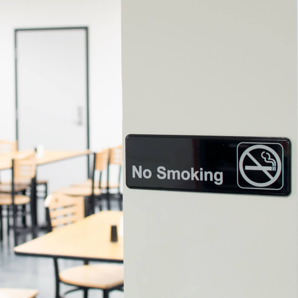 No Smoking Sign with Self Adhesive Backing, White on Black